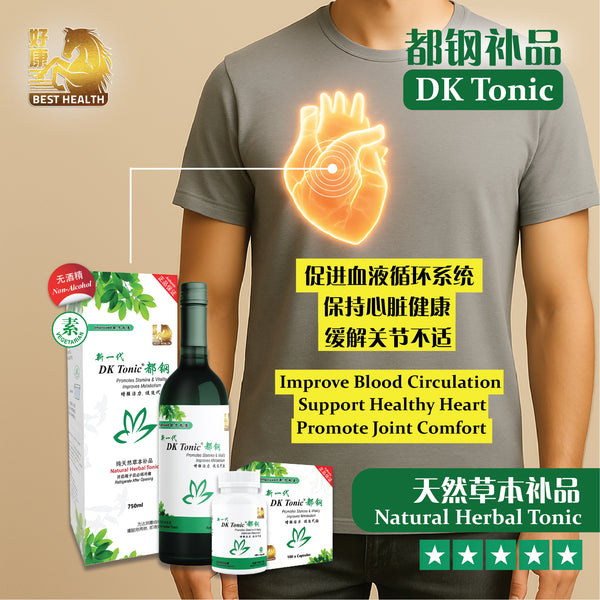New “DK Tonic” improved formula and better efficacy, is a non-alcoholic, 100% natural herbal tonic. It nourishes the blood, regulate the body 12 meridian systems, also known as the energy channels(“qi” flows). Adjust and enhance the various vital systems of the body, such as immune system, five elements of the internal organs, meridians, nerves and detoxification.